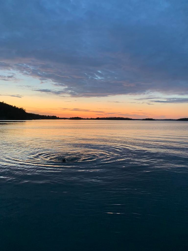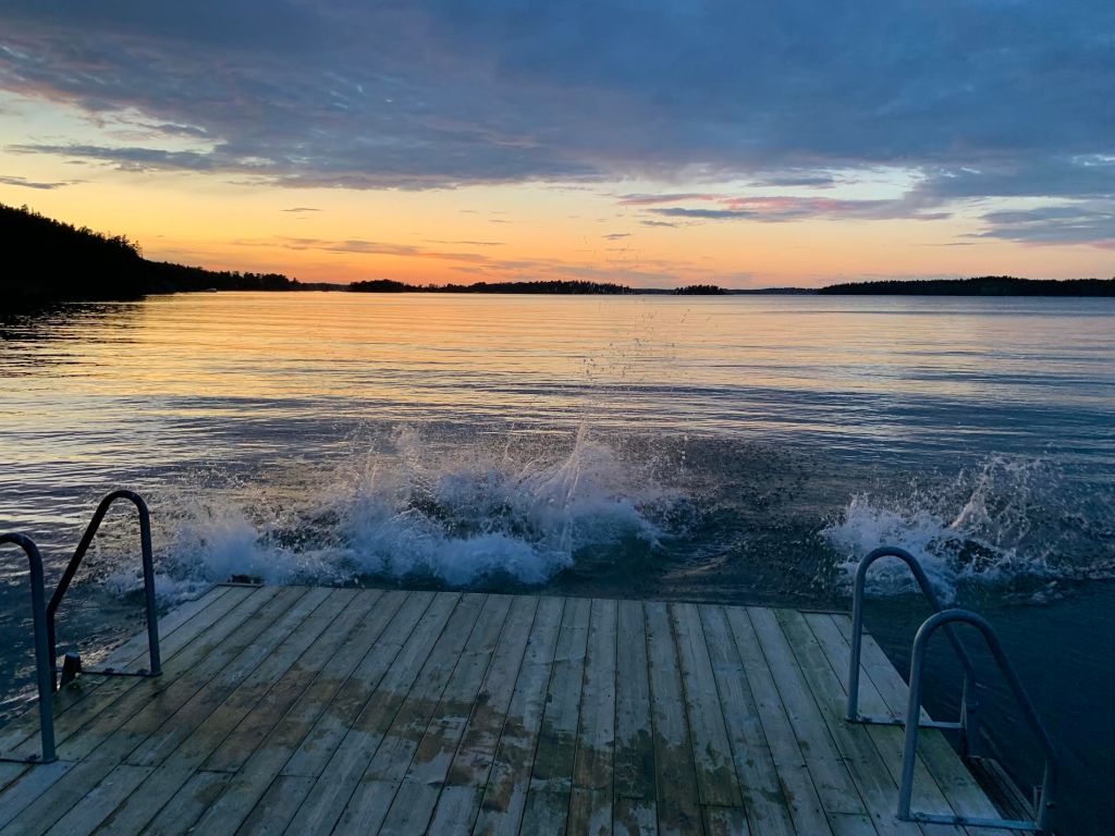 All of us kids played a Swedish game outside, and then went inside to eat dinner. We ate burgers and had some delicious sides as well. After dinner, we all decided we wanted to go for a swim. The water was freezing, but it was so worth it. Also, we went right during sunset time, so it was the most beautiful scenery. After enjoying the swim and the sunset, we all went back to the house, and decided we wanted to play a card game before leaving to go back to my apartment. So we played a card game, and I can honestly say thatI have not laughed like that in a while. They are all so funny and I had the absolute best time with their family. They really reminded me of my own family, so I immediately felt connected to them!
