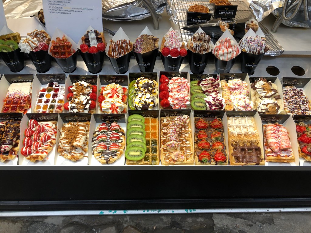 So, now on to my FAVORITE part of Belgium…..A CHOCOLATE TOURRRRR. Wow, all I can say is that the chocolate in Belgium, as well as the Belgium Waffles, just blew me away. I am a big chocolate lover, so I was all for going on a chocolate tour. Essentially, our tour guide took us to all of the best spots in Brussels, and we were given many samples from each place. We also went to a classic waffle house, and he gave us each our own waffle. All I can say is that the waffle was probably the best thing I have ever eaten in my life, and I am not joking. So, if you love chocolate, and a good waffle, Belgium is the place to go.