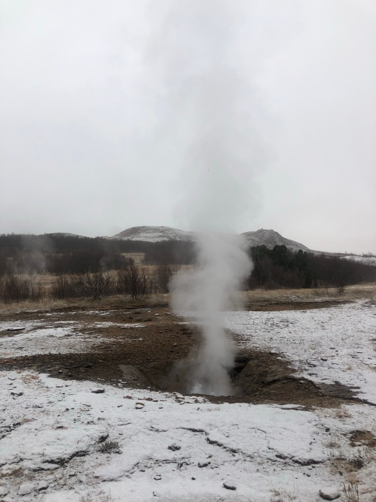 After a long nights rest on Friday, we then had a full day planned on Saturday in Reykjavik. We booked a tour to see The Golden Circle, and also to swim in a Secret Lagoon somewhat hidden in Iceland’s nature. The Golden Circle consists of three stops, which includes the hot springs, a beautiful waterfall, and the only place where the American Plates and European Plates meet. I have to say, seeing all of these things was absolutely incredible. All of the trips I have been on so far have been somewhat similar to one another; however, this trip was all about nature, and how powerful it can be. It was truly something to see!